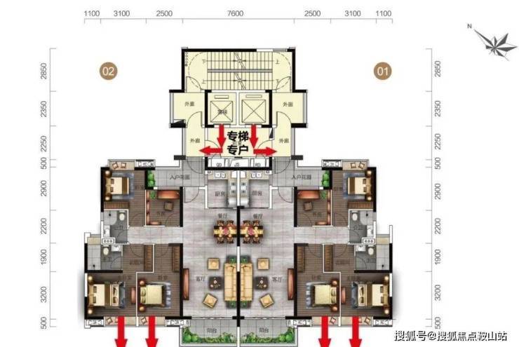 最健康:专梯专户设计,同层不同梯,最大减少与人接触;前室外廊双重隐私保密,让回家充满仪式感;衣帽间主卧室动静分区,生活区更好隔离,保证家人健康生活