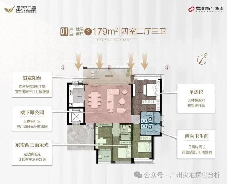 4栋,30层高,211㎡,是星河江缦总层最高的一栋,南北都能望江,白天鹅楼栋也能映入眼帘其中5层以上是住宅区,1-4层为业主会所,诸如健身房、高尔夫球练习室、茶室、共享厨房等功能区。