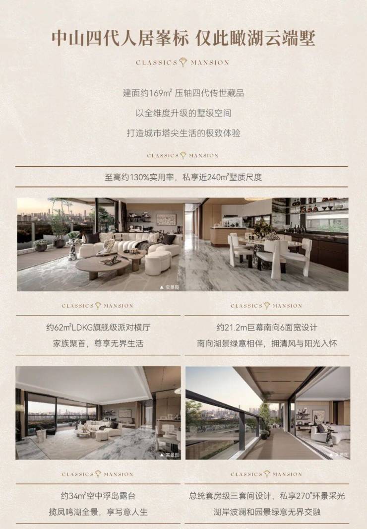 中山心 首个四代洋房建华龙湖·香山颂重塑中山四代好房子标准,高定城市人居典范全新四代浮岛大平层 迭新升级启幕中山人居新时代l 承袭龙湖鼎豪基因,匠筑中山人居峯标l 四代奢宅大平层,革新至高约130%极致空间l 约6米挑高空中浮岛,270°环幕瞰景视野l 千万级安缦酒店式会所,重构顶奢生活样本