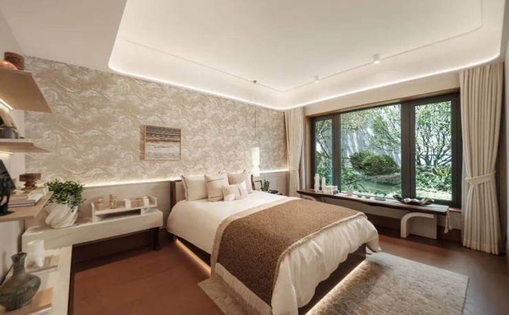 约26㎡环幕高定主卧套房:从“功能满足”到“精神满足”酒店式顶奢主卧套间,重新定义“私人领域”。
