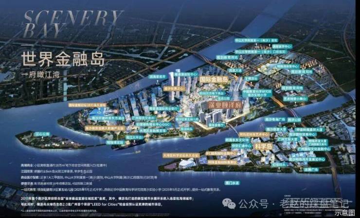 《广州南沙新区总体城市设计优化提升工作》打造未来广州发展核的南沙,围绕南沙重要公共服务设施打造核心城市客厅,其中高端科创&金融产业齐聚于明珠湾;明珠湾城市客厅(三江六岸体现中国气派的大湾区城市客厅),占据南沙核芯地段。