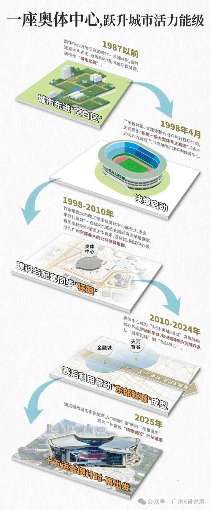 全运会正以强劲的动力改变着广州,而奥体周边区域则是这场改变的核心地带,继九运会掀起的基建热潮后,奥体板块再次迎来大规模城建开发红利,新一轮的蝶变正悄然酝酿。