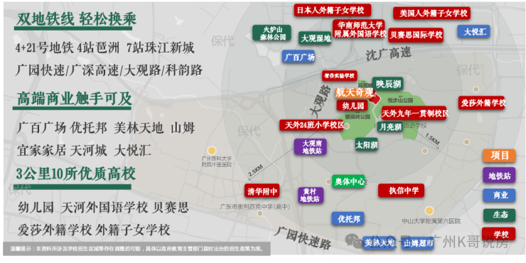 天外智谷分为两个校区,越秀观樾配建24班小学;缦云广州配建的九年制学校(18班小学+27班中学),今年9月份开学。