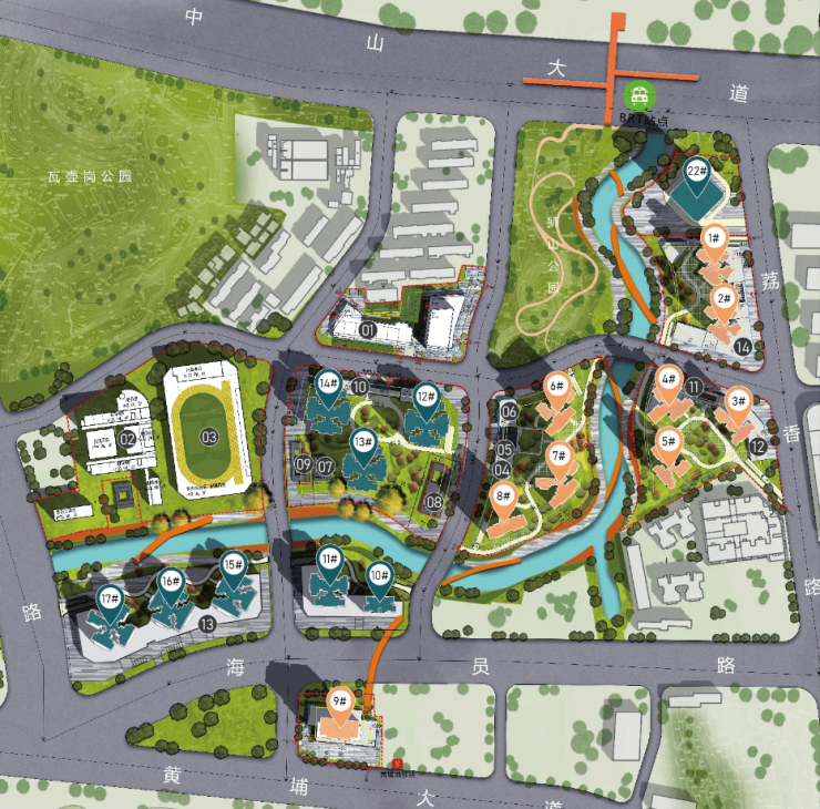 项目旁边,就是瓦壶岗公园、狮山公园、蟹山公园三大山体公园,公园总体量近10万方,仿佛一座巨型天然氧吧。