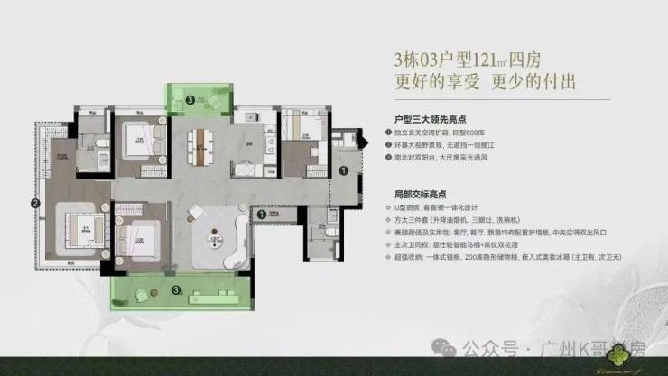 同样是南北对流的四房户型,做到了4.5开间朝南。