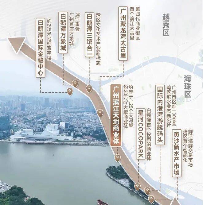作为西翼CBD,则以重奢为支点、以沿江带为依托,开辟了一条带状连片、向外辐射的发展路径。白鹅潭不但产业猛进,各个维度的兑现相当“勤奋”。从搞商业、促旧改到建枢纽与修路桥,整个板块总让人常看常新。