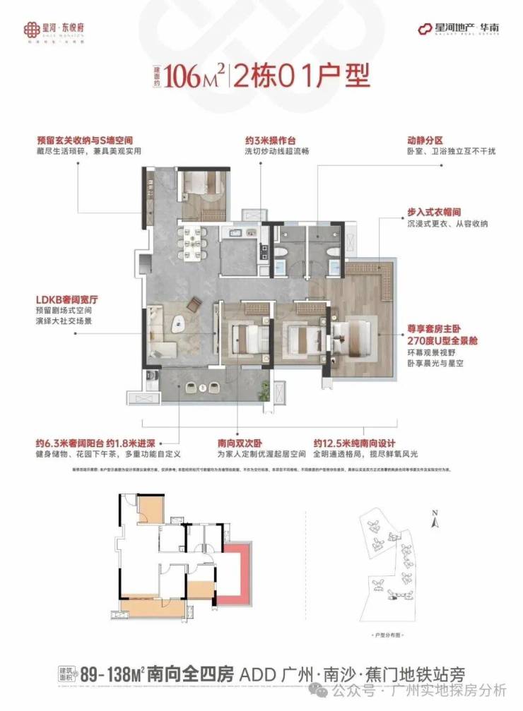 项目位于南沙金洲蕉门区府板块,是星河东悦湾五期的全新升级产品,可砸全赠送飘窗设计,南沙区府第一个。