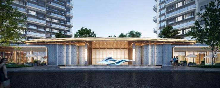 一进入府:广州第一个四代居“场景式体验”社区,酒店式主入口礼序形象,对景发光云石过渡空间。