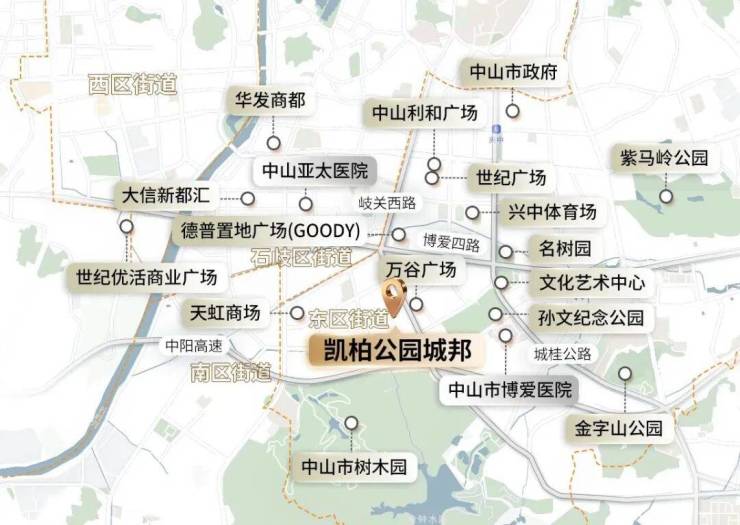 孙文公园、中山树木园、中山潮流地标VV Park、槎桥美食街、利和广场、天虹购物中心……都在项目1公里范围内。