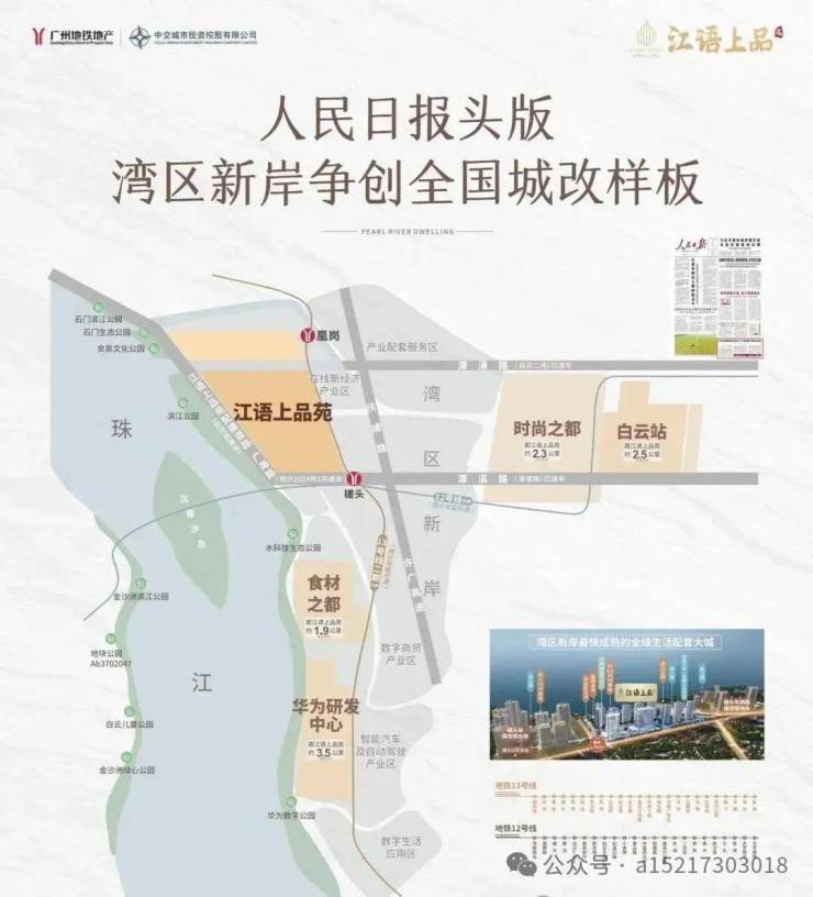 2023年广州发展聚焦白云,广州市规划院编制的《白云区珠江沿岸高质量发展实施规划》指出:白云滨江岸线将高标准打造20公里的高量发展示范带。20公里江岸将兴建13大滨江公园,其中槎头滨江公园就在项目楼下。