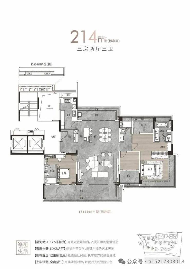 4. 214㎡ 三房三卫户型(小高层)