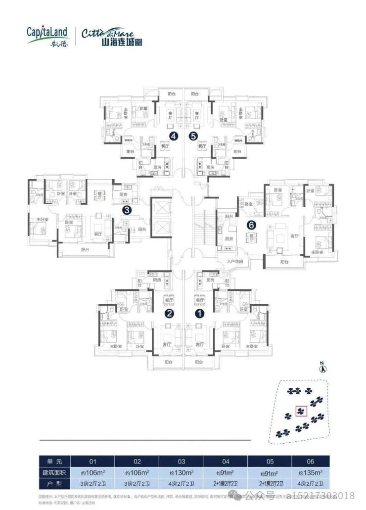 项目一共有5个面积段,分别是85平三房两厅一卫,91/106平三房两厅两卫,130平A户型五房两厅两卫,130平B和135平户型四房两厅两卫。