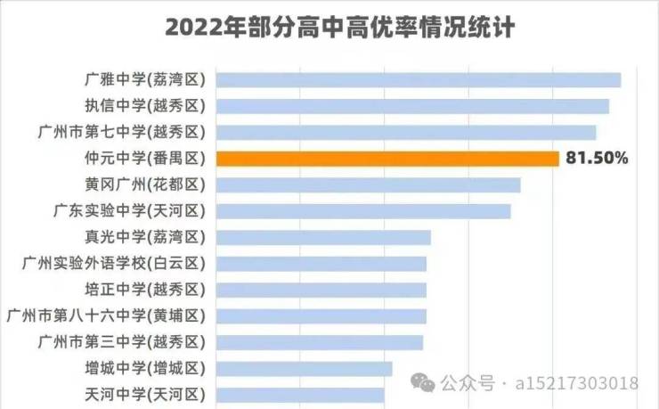 聚焦2022年最新数据,仲元中学的高优率已经达到了81.5%,600分以上考生接近200人,遥遥领先于其他常出现在广州家长口中的学校。