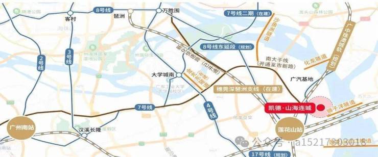 公共交通不算好,目前出行基本上靠自驾,最近的地铁4号线都要10公里,后续周边有规划地铁8号线东延线{莲花湾至万胜围}预计2027年底通车,全程8个站,通车后,莲花湾到海珠只要20分钟,且目前这边公交线路也比较少。