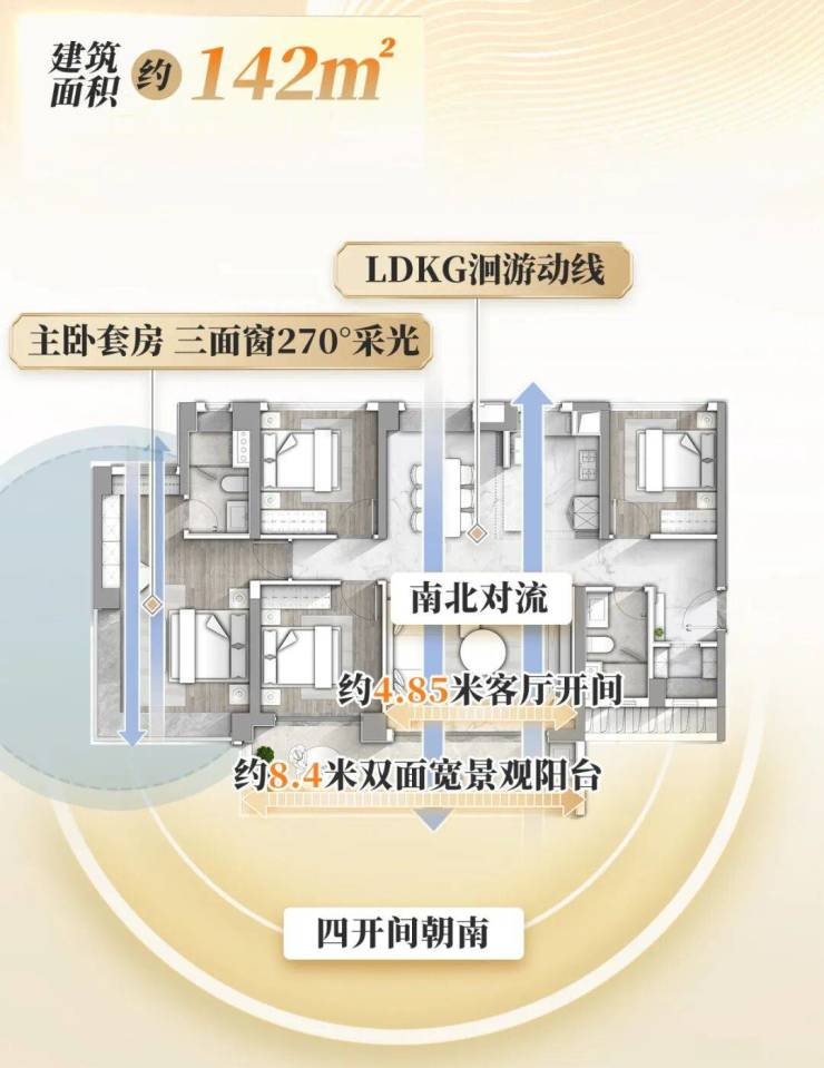 全明通透|南北通透对流,四开间朝南,纵向惬意