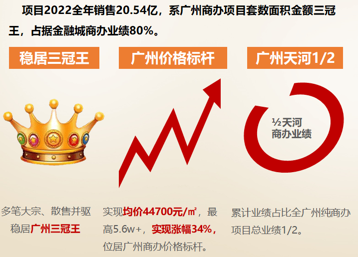 · 合景金融城项目常年蝉联广州及天河区商办三销冠王,超高转化率4:1,强势热销稳居广州TOP1,赢领全城,稳坐广州商办头把交椅。