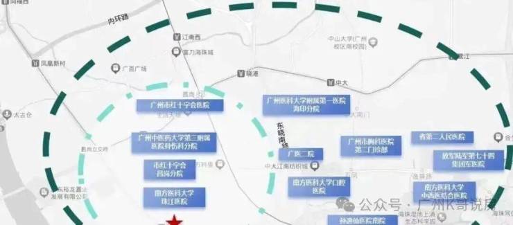 步行约850m可达珠江医院(全国首批三甲)、约250m广医二院(西院区)、南石头社区服务中心;周边约3km内广州红十字会医院、妇幼保健院(二甲)、省口腔医院(三甲)、中山孙逸仙医院南院、广中医骨伤科医院等医疗体系,24H为健康护航。