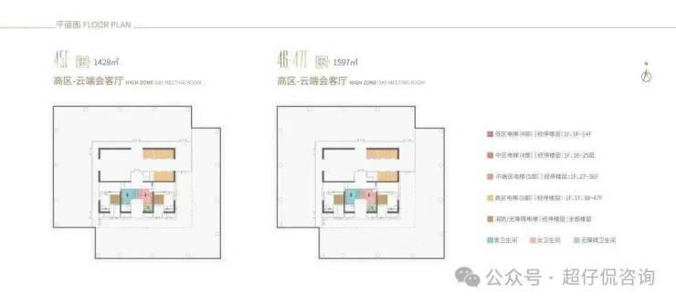 38-44F,是企业会客厅,约338-479㎡ 45-47F,约1427-1596㎡(整层)
