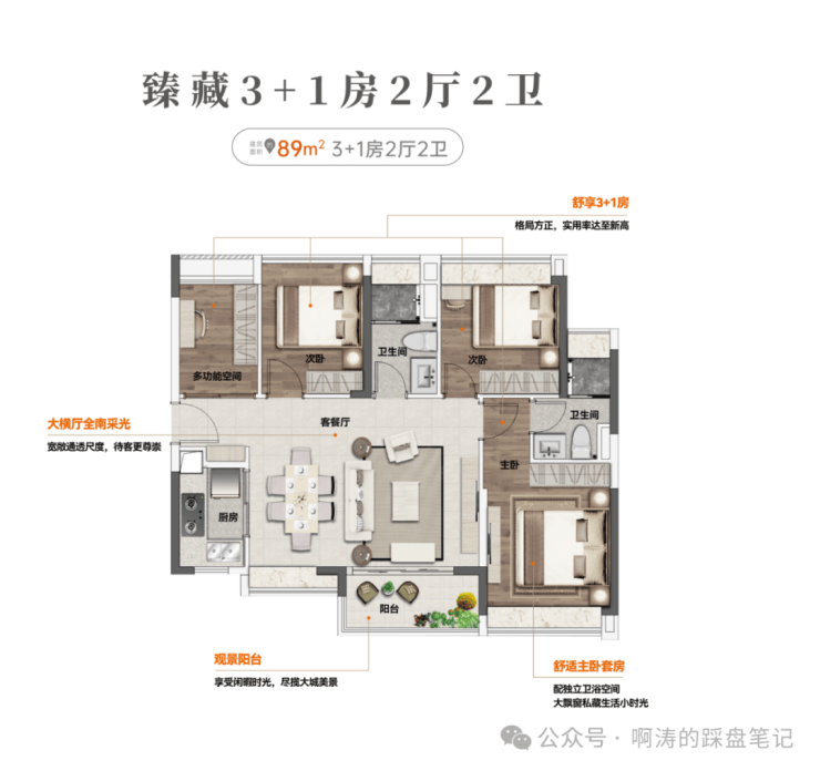 对比周边85m²三房,89m²四房多一房且总价更有性价比