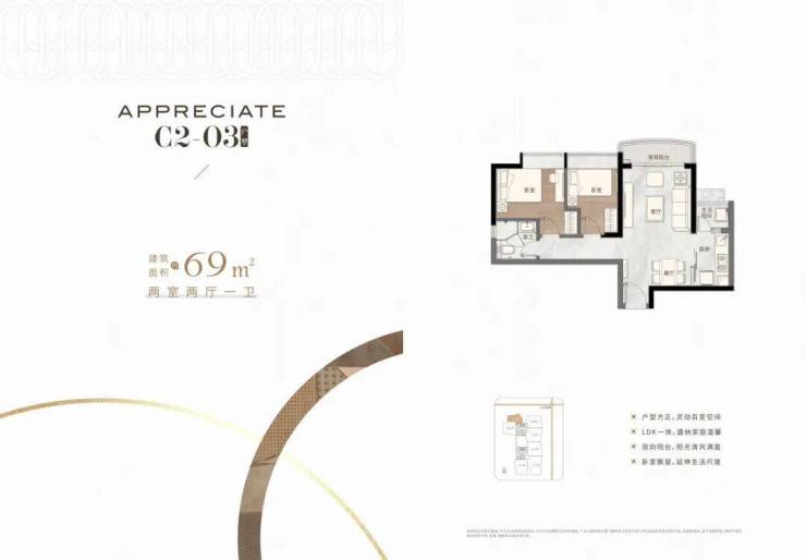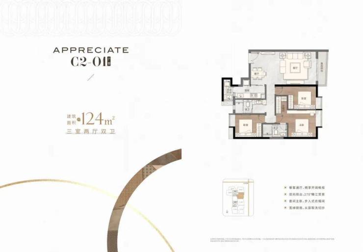 顶尖设计团队,匠造建面约69-144m²臻美二至四房,户户双阳台,LDK一体设计,东南向望江赏景,科学布局动静分区,双入户大堂,配备星级五层地库,造就理想生活。