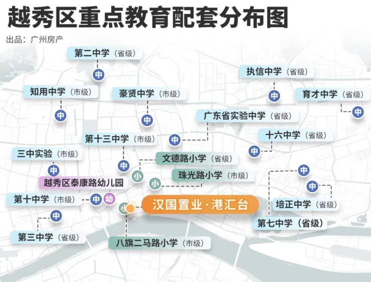 越秀区集中近20所省重点学校,位居广州之首。港汇台邻近广州三中、广州七中、广州培正中学、广东省实验中学等一级名校。