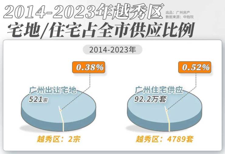 越秀区,广府千年不变的行政、商贸、金融及文化中心。去年,越秀区GDP达3650.18亿元,以全市0.5%土地贡献了12.7%GDP,经济密度全省第一,无愧广州都心。过去10年广州共出让521宗宅地,越秀只占比0.3%,难有新筑。