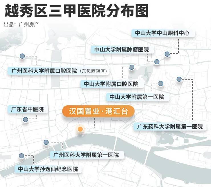 越秀区拥有352家医疗机构,占全市1/3医疗资源。港汇台,2公里范围内就有4家三甲医院(孙逸仙医院、广医一院、广东省中医院、中大附属肿瘤医院)驾车约10分钟即达,为健康保驾护航。