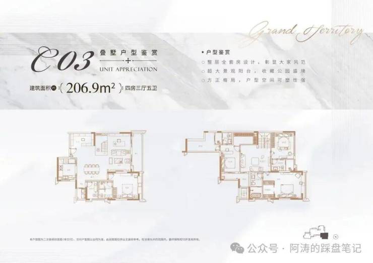叠墅产品仅12席,户型面积169-215㎡,设计为“有天有地有花园”,私家电梯入户、全屋套房布局、6米宽景观阳台等配置,满足改善型购房者对品质生活的追求。
