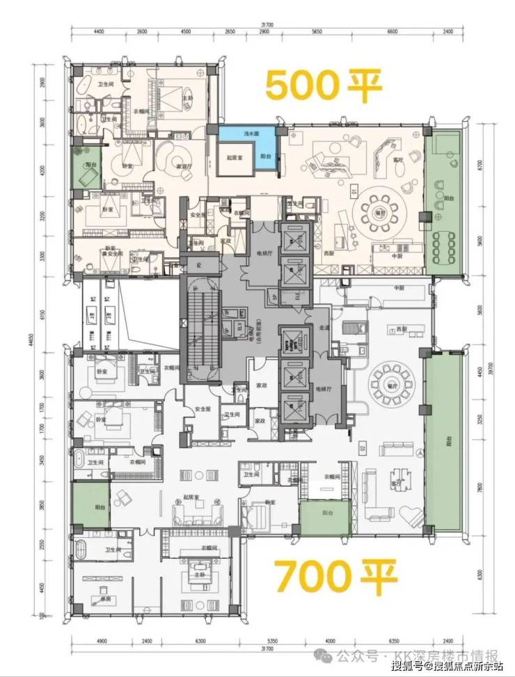 ③超高区58F起(200米以上)是约500-700㎡顶级大平层;