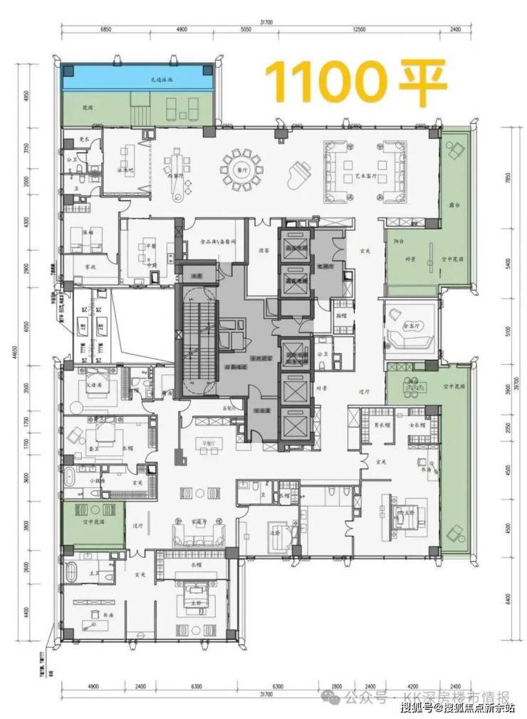 ④顶楼整层不是复式,约1100㎡顶奢大平层仅两套