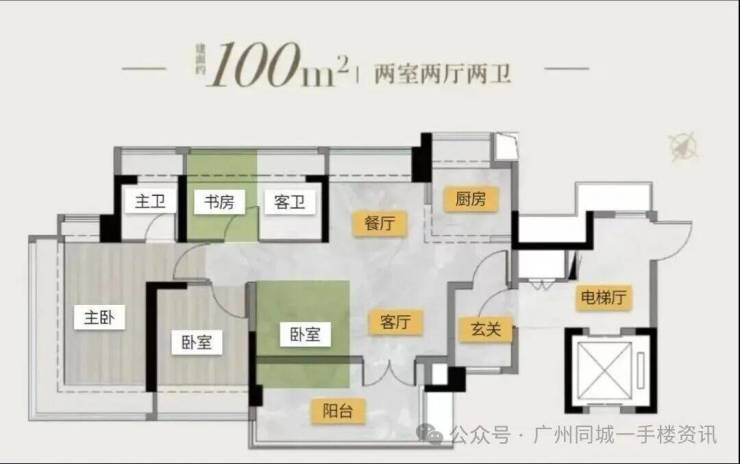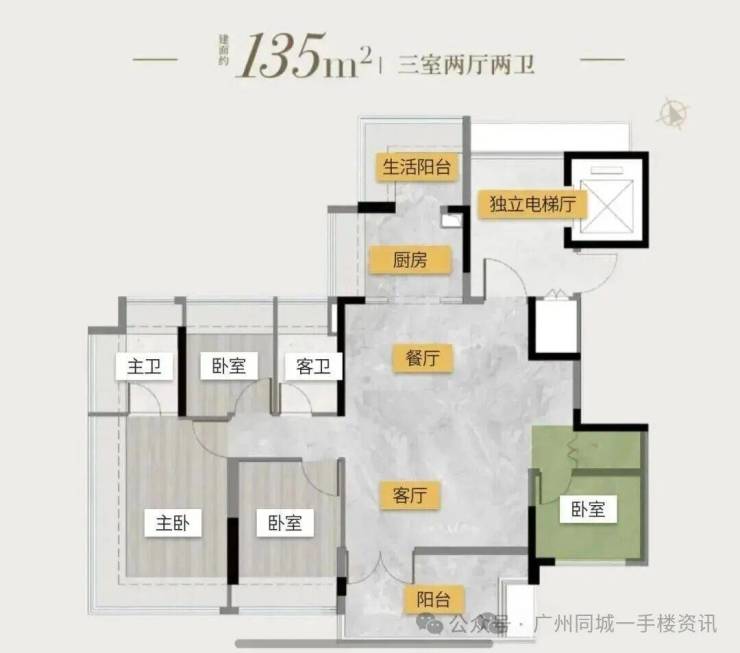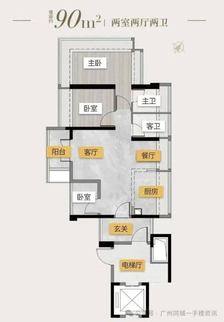 塔楼01东边位:90㎡竖厅三房,东南向