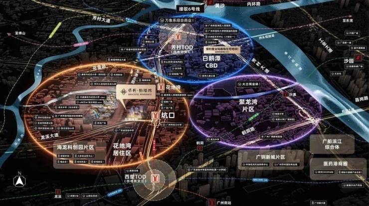 项目自身规划约40万㎡四大滨水商业街区,约700米处万科规划有18万㎡的理想花地商业,周边现有的有芳和荟购物广场,荔胜广百等商圈。