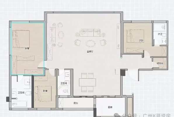 133㎡四叶草横厅:无需打通即享约7.4米大宽厅,媲美170㎡产品;