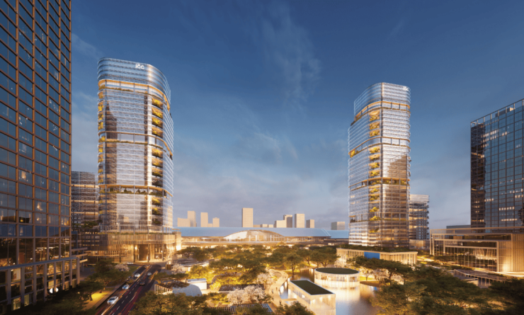 规划理念:全球第五座ICC,对标香港环球贸易广场(香港ICC),采取“东商务、西交通”总体布局,集顶级商场、五星级酒店、甲级写字楼、高端住宅、星级服务式公寓及公共交通设施于一体的全业态综合体