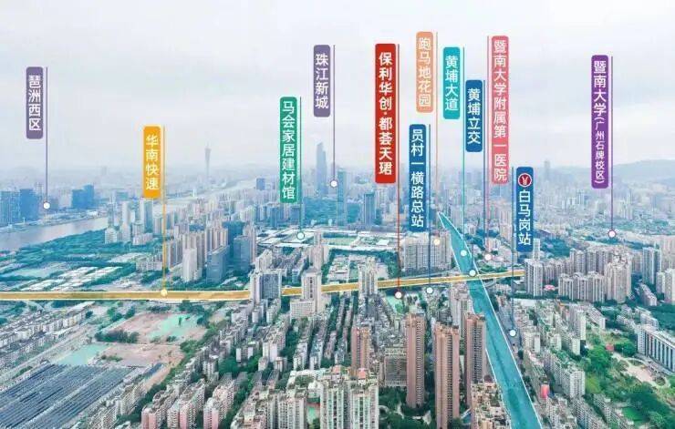 地理位置优越:地处华南快速和黄埔大道交汇处,西侧紧邻珠江新城东区,东侧为金融城核心区,往南与琶洲西区隔江相望,开车 10 分钟交通圈可覆盖核心区大部分目的地。