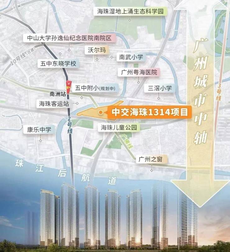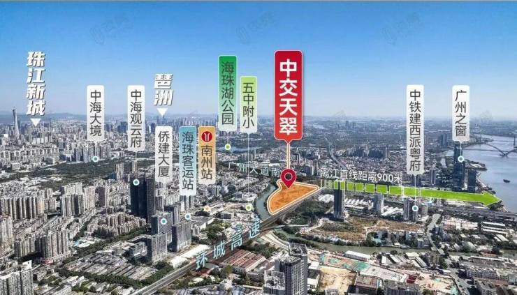 - 天:强调广州新中轴与珠江后航道交汇的稀缺地段,直线距离珠江新城仅6.5公里,20分钟通勤核心商圈。