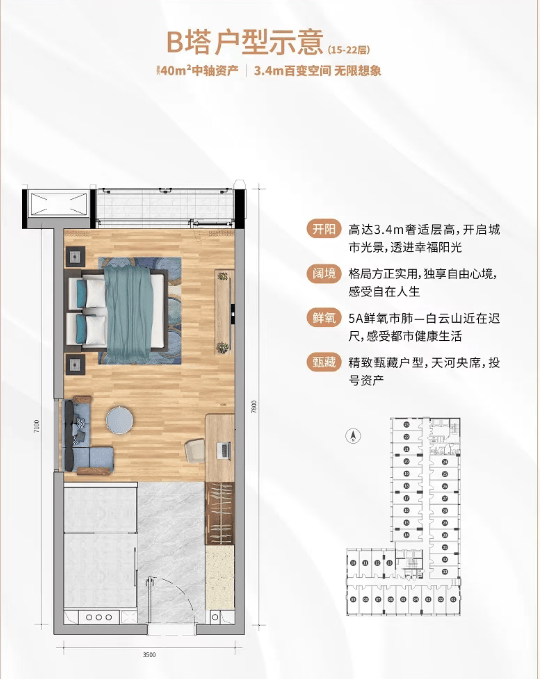 观成大楼:推售建筑面积约为31-57㎡的中轴资产,空间设计合理,包括卧室、厨房、卫生间等功能区域。4.5米高超高空间,采用中空挑高设计,提供墅级享受。