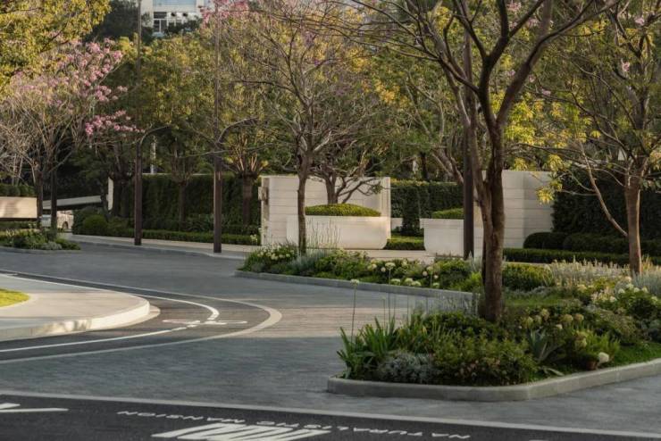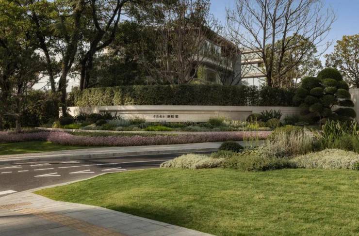 水脉相承,以之为礼。两侧叠瀑水景包裹于精致花境中,悄然划定私属疆界;原生大树与灵动水景交错相融,与自然过渡。