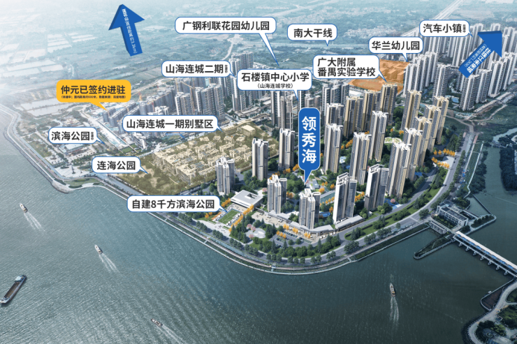 包括九年一贯制的广大附中番禺实验学校、石楼镇中心小学山海连城学校,以及广钢利联幼儿园、华师大幼儿园等。