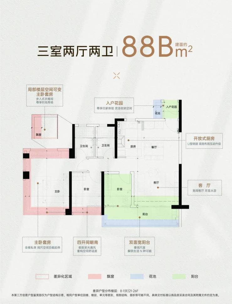 建面约77-135㎡三四房,四面宽南向,三房(最高)享约5米客厅,新规产品约127-137%高使用率,(但实际看了,感觉并没有宣传的那么高使用率)同面积不同户型,贴心打造多种人居空间。