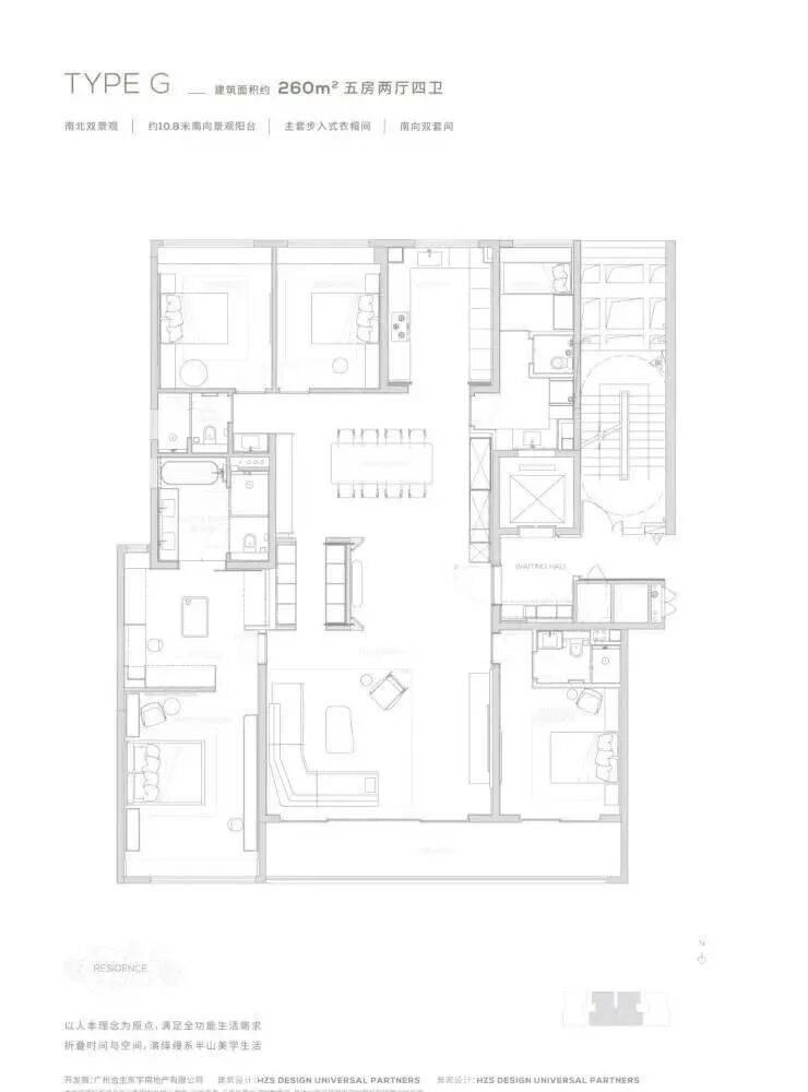 260-315㎡五房:南向超10米景观阳台、巨幕宽厅、独立保姆间与主套衣帽间,部分户型更设灵动功能岛,实现生活场景自由切换。