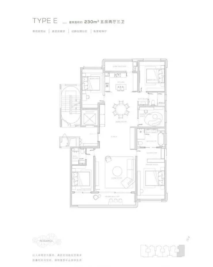 190-230㎡五房:南北双阳台、双洄游动线、中西双厨配置,适应多代共居;