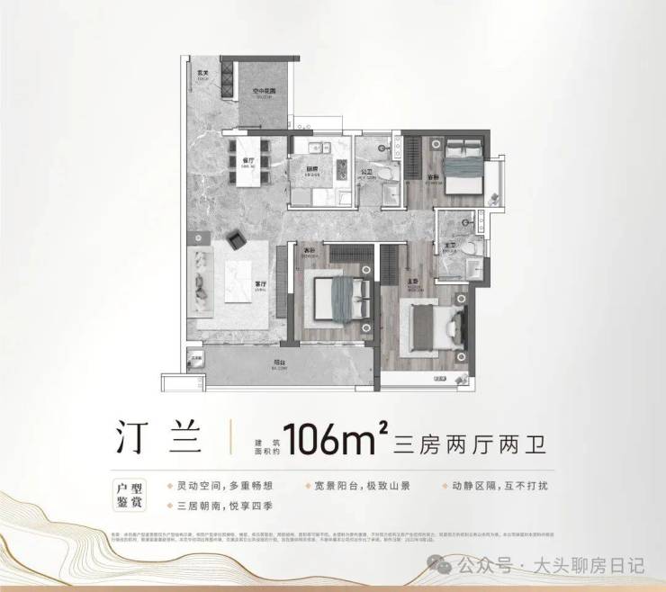 🤩南北对流,106㎡舒适三房,高效实用空间,满足大家庭需求,阔景阳台,四季景观尽收眼底