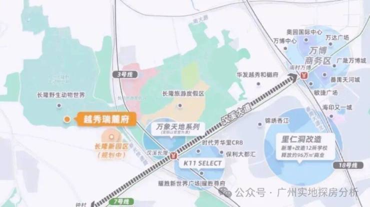 项目位于番禺长隆板块,紧邻长隆度假区和万博CBD,东临万博CBD,执掌华南板块核芯。