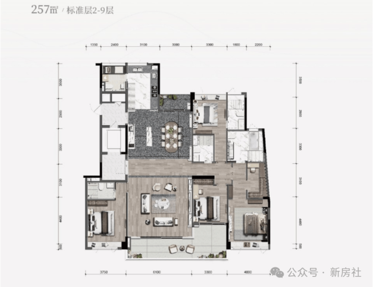 房源位置分布在2栋和15栋,包含建面约257、290、197平等三个面积段,视野景观开阔,整个项目被抬高7米,园林比地面两层楼还高,环境很静谧,更适合日常游园。一面看小区花园,一面望向小区外数百米尺度的园林。