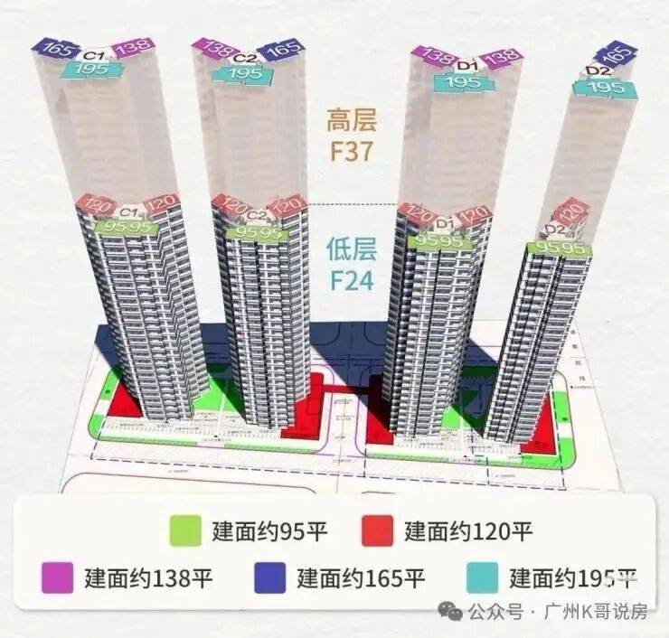 项目规划有4栋37层高层住宅楼,住宅楼都分为高区和低区两部分。