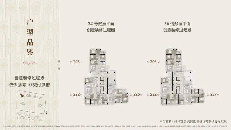 「保利玥玺湾」小区是半围合式结构,面积段是203-222-227-237-273-347-411-436-630㎡大平层,样板间能看的有三个237-347㎡的。
