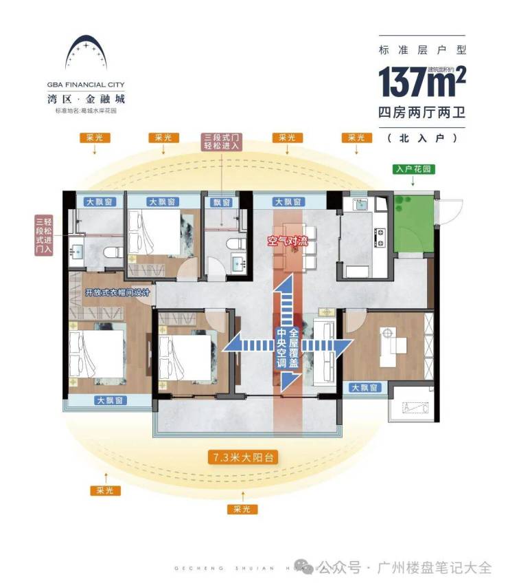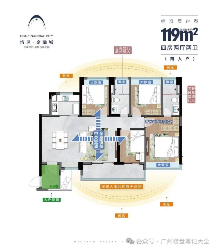 『阔绰四房』园林景观大平层阔绰4房,卧室全飘窗设计,宽敞通透