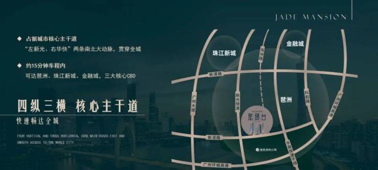 项目占据核心主干道,约15分钟车程内即可到达琶洲、珠江新城、国际金融城三大核心CBD。