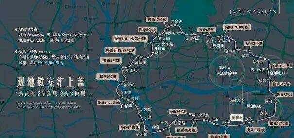 ◆ 地铁11号线(在建中) :广州首条地铁环线,设32座车站、换乘站达19座。